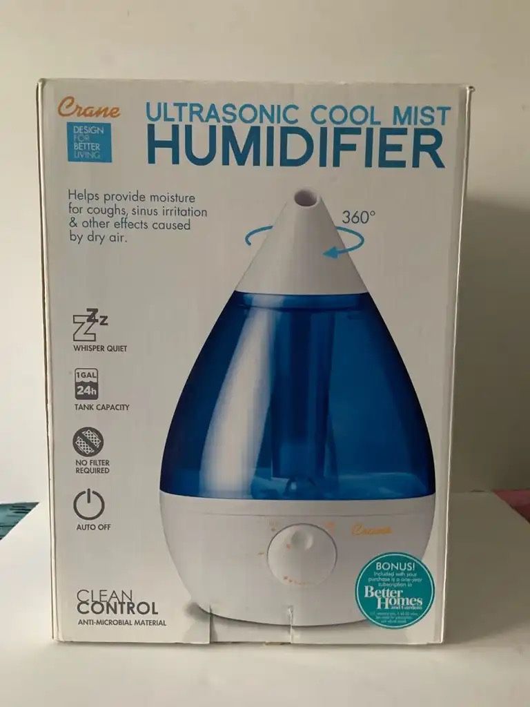 This humidifier helps provide moisture for coughs, sinus irritation & other effects caused by dry air. 1 gallon tank, easy to clean, no filter required. Humidity control: adjustable output, runs up to 24 hours. Whisper quiet; Helps provide easier breathing for a good night’s sleep. Clean Control: Anti-microbial material: Proven to help reduce mold and bacteria growth up to 99.96% in the humidifier base. Ideal output for medium sized rooms. Auto-Shut-Off feature engages when the water tank is empty.