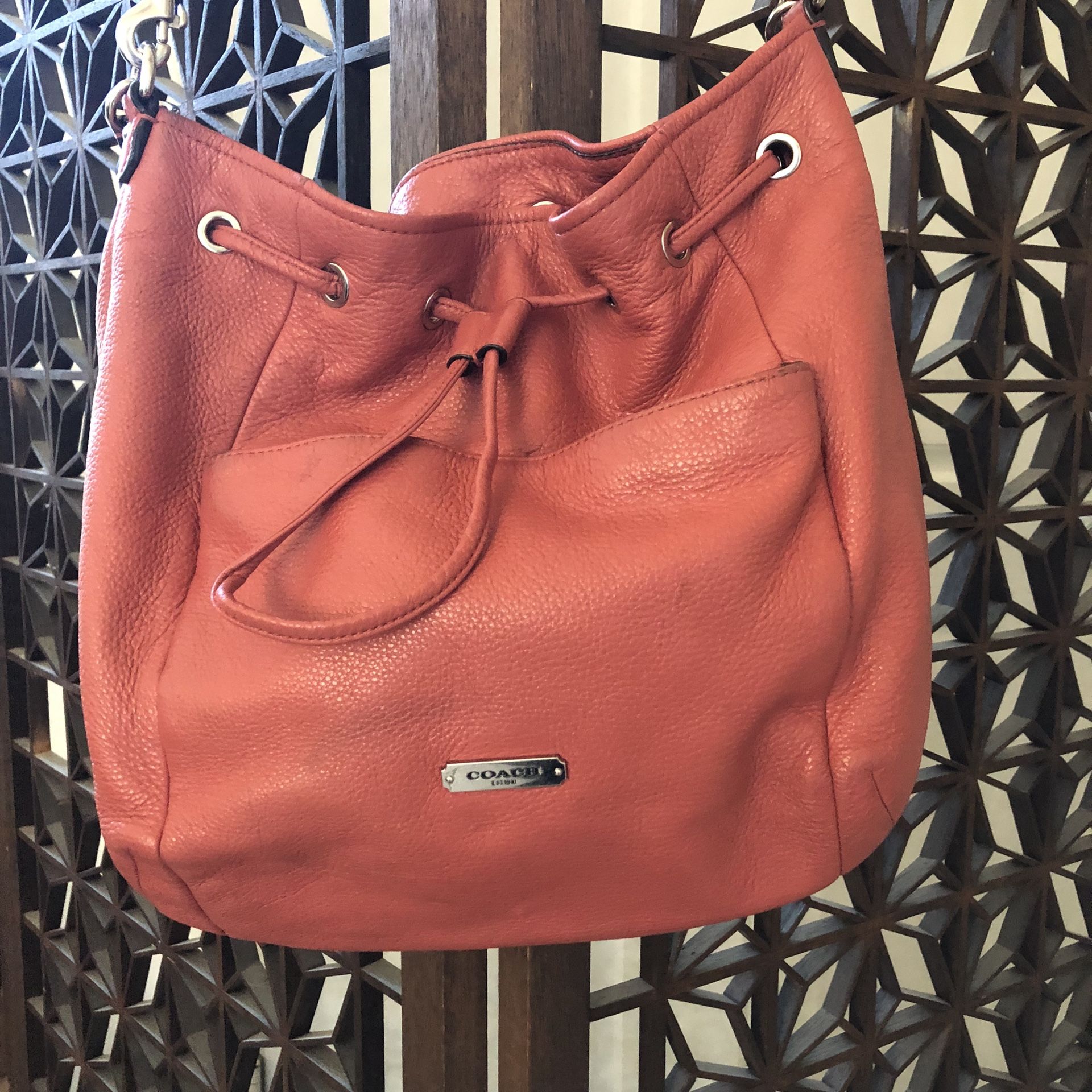This is a pretty coral color Coach handbag in good condition. Has both crossbody strap and short strap. There is some wear on the shorter handle as shown. The inside has minor signs of use. Non smoking home. Pick up at my home in Casa Grande, AZ $35 local pickup or $40 plus shipping.