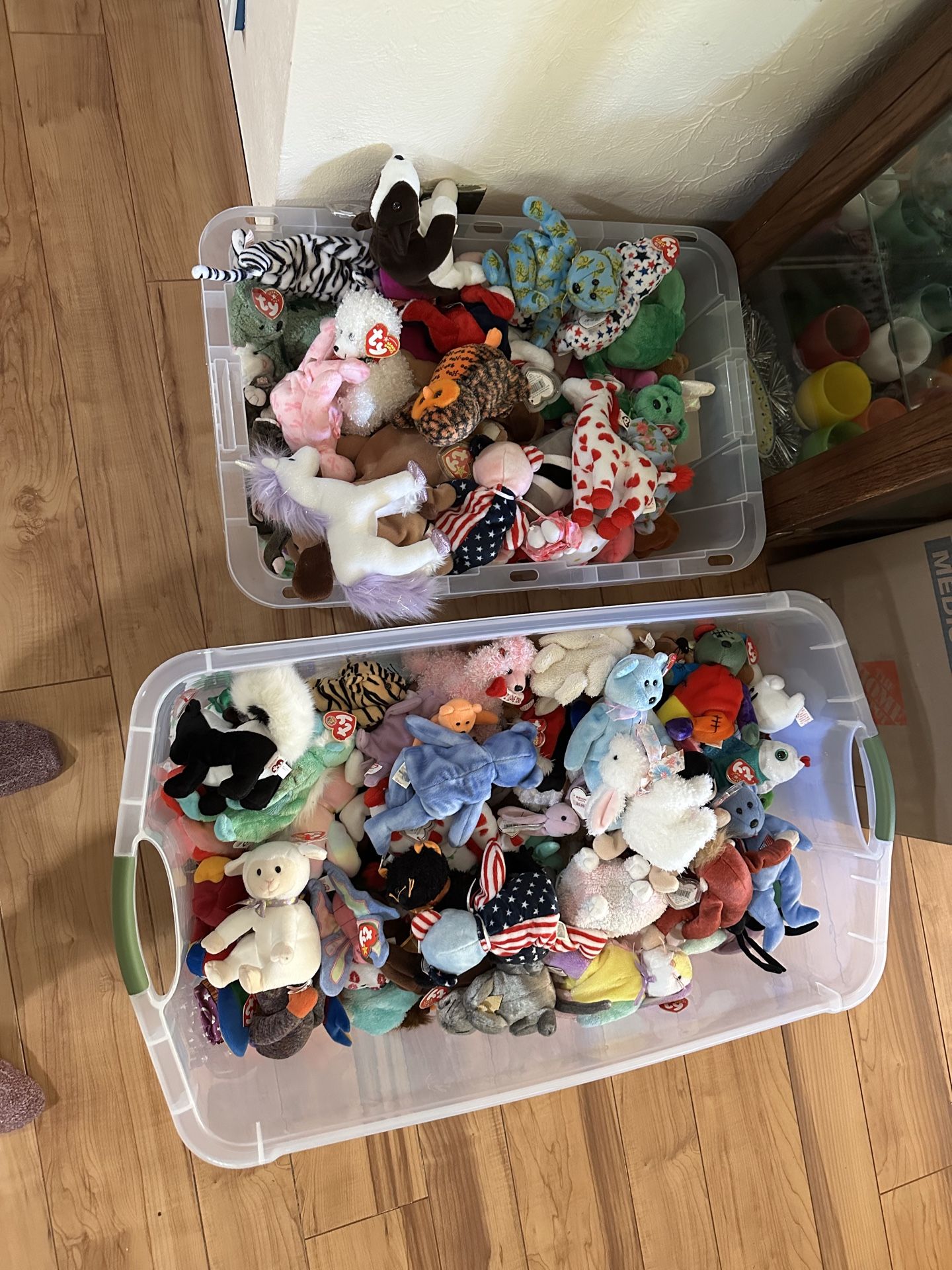 200 beanie babies! Late 1990- early 2000s. Most are in excellent condition with tags attached. Whole lot!