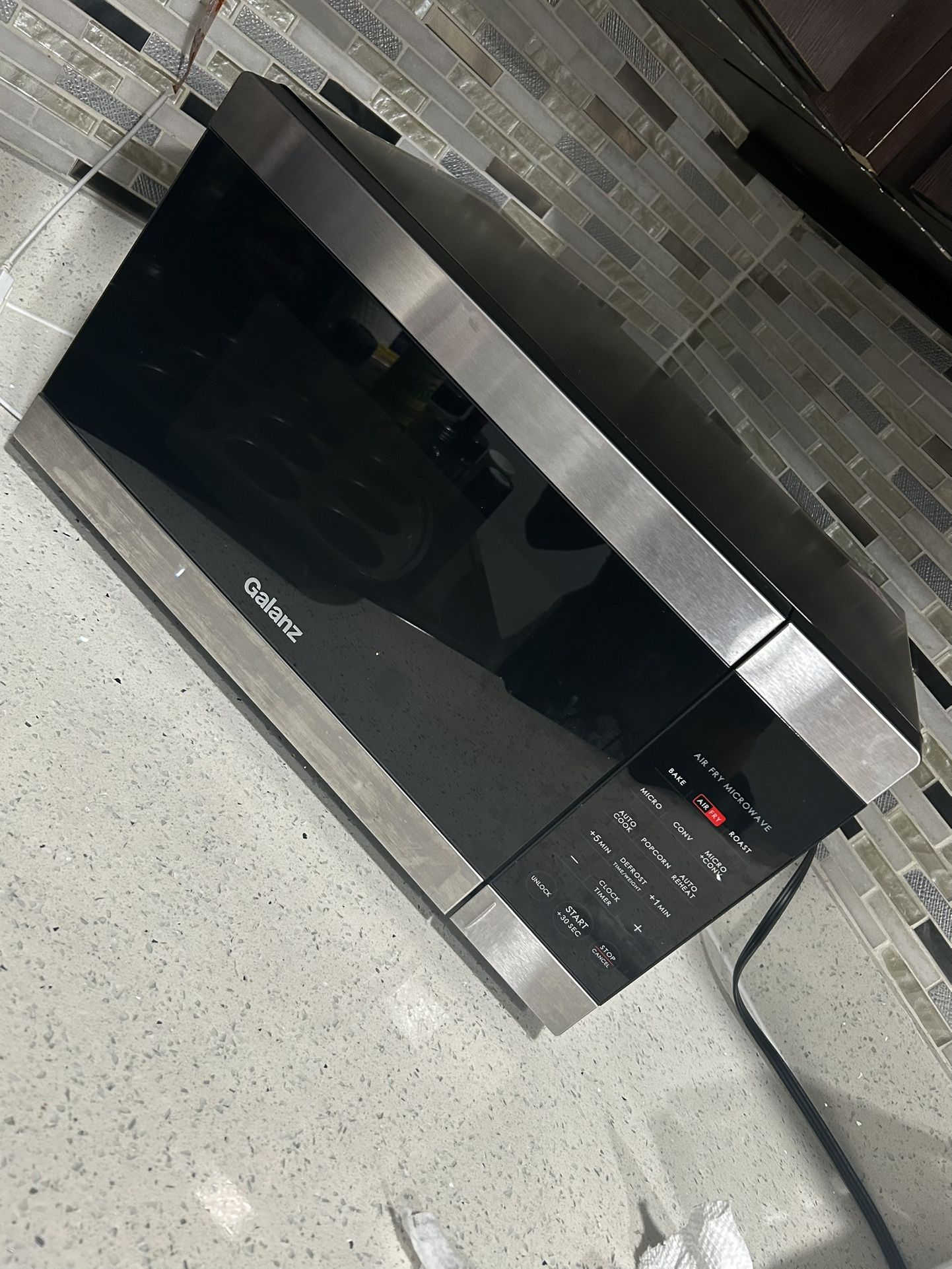 Used for three months. In great condition, going for $200 on Amazon. it’s Ultimate Cooking Versatility: The multifunctional air fryer, convection oven and microwave that features Combi Speed cooking in one device for 3 Appliances in 1. Air Fry Technology: Air fry with little or no oil for healthier, crunchy fried favorites like chicken, shrimp, wings, and French fries. The easy-clean air fry kit provides more frying surface area with better air circulation compared to traditional air fryers. Air frying does not use microwaves but uses the built-in heating elements. Combi Speed Cooking Faster than either mode alone, the intelligent combination of True Convection and microwave cooking creates delicious dishes with optimum texture and taste. Roast chicken, baked potatoes and frozen entrees can now be ready when you are. True Convection Heated air circulates throughout the oven as food spins 360°, cooking your food faster and more evenly without hot spots. You can even broil and bake foods with direct heat, such as fish, chicken and fresh, oven-baked goods. Auto-Cook and Auto-Reheat 6 cooking programs and 8 reheating program for convenient and easy use. Thoughtful Control Panel with quick touch buttons Control Panel is designed for easy use and allows you to start cooking faster.