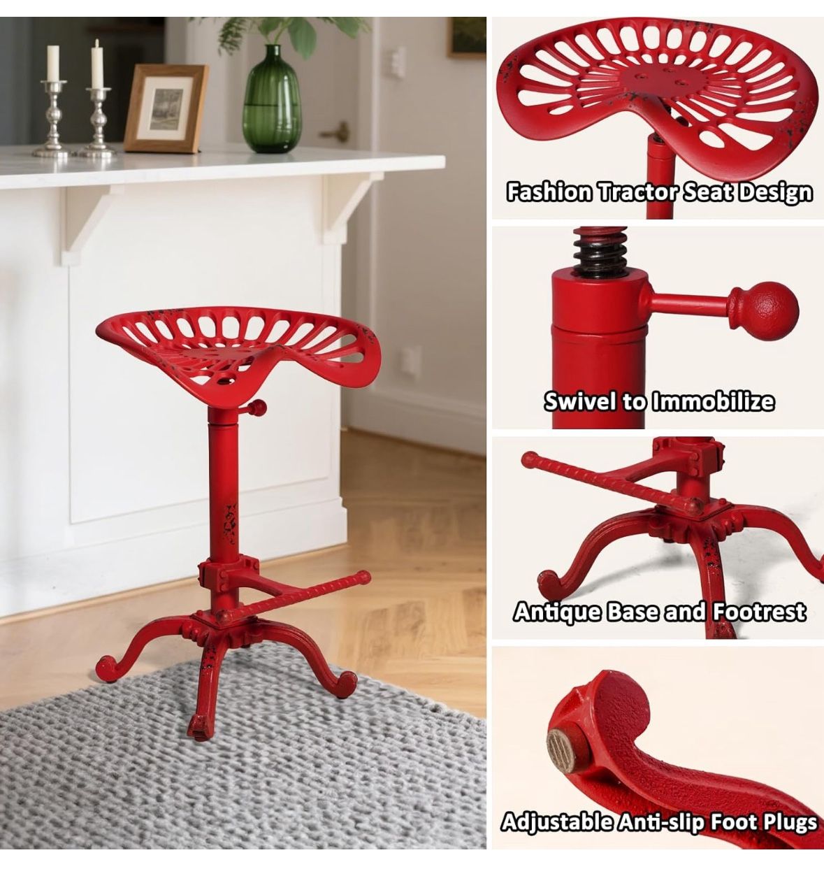 Cast Iron Rustic Industrial Farmhouse Tractor Seat Adjustable Bar Stool * New * Industrial bar Chair * Aged Red 870015, 71-91, BG-L, Taburete de bar ajustable Silla de bar industrial, rojo envejecido, hierro fundió, Asiento de tractor de granja industrial rústico $65