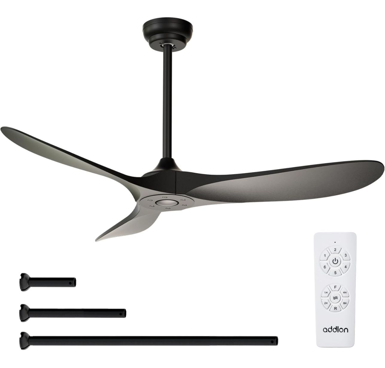 Ceiling Fan NO Light: Bring more than just wind, but comfort! addlon modern ceiling fan, with streamlined blade design, it can be the perfect decoration in your home while delivering enough airflow. Perfect for Patio,Gazebo, Bedroom, Balcony, Living Room and other various indoor and outdoor scenes. (Note: Please avoid direct rain) Ceiling Fan with Remote Control: Through the remote control, you can turn the fan on/off, adjust wind speeds, as well as realize the function of 1/2/4/8 hours timer off, at the same time, you can also realize the forward and reverse rotation control directly on the remote control. In addition, our fan has a memory function, if you turn off the fan through the wall switch, the next time you turn it on, the fan will still maintain the state before the last time it was turned off. Noise-free Experience: Enjoy the wind, but keep the noise out! This ceiling fan is designed for light sleepers, brings you comfortable sleeping with a quiet living environment. The volume is low to 35dB when the fan is running, like the sound of falling leaves, or like a butterfly flaps its wings(30dB). It is more suitable for families with babies or elders. Reversible DC Motor: The high-quality & high-speed motor brings a perfect wind experience. The wind speed can be adjusted in 6 gears, you can choose between comfortable wind, natural wind and strong wind. Reversible dual-direction fan improves air circulation to keep you warm in winter and cool in summer. Easy Installation: We know that most users struggle with fan installation, so we provide detailed installation instructions and installation videos so that every user can reap the rewards of a challenging installation with a sense of accomplishment while saving a significant amount of money on electrician costs.