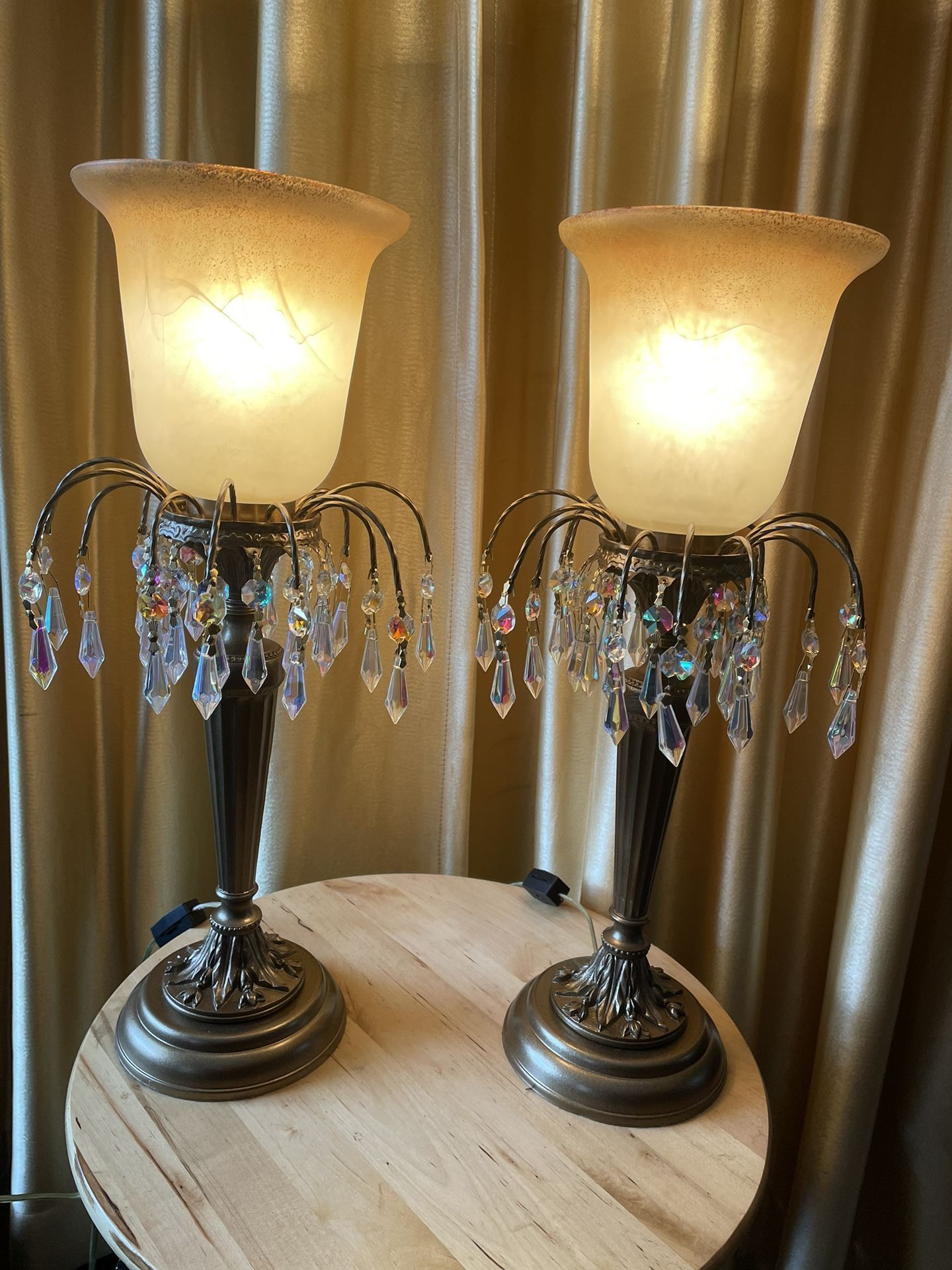 Featuring tri-color crystals, just rewired and ready for a new home. Measures 18” tall X 8” wide. Pick up in Whitestone Queens . $220 for the pair.
