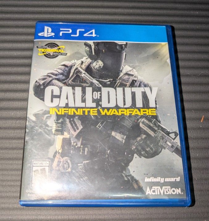 Used call of duty infinite warfare for the PlayStation 4. Has it's plastic case but is missing the original booklet\manual, not really a big deal if you're just trying to play the game. Asking $15 OBO