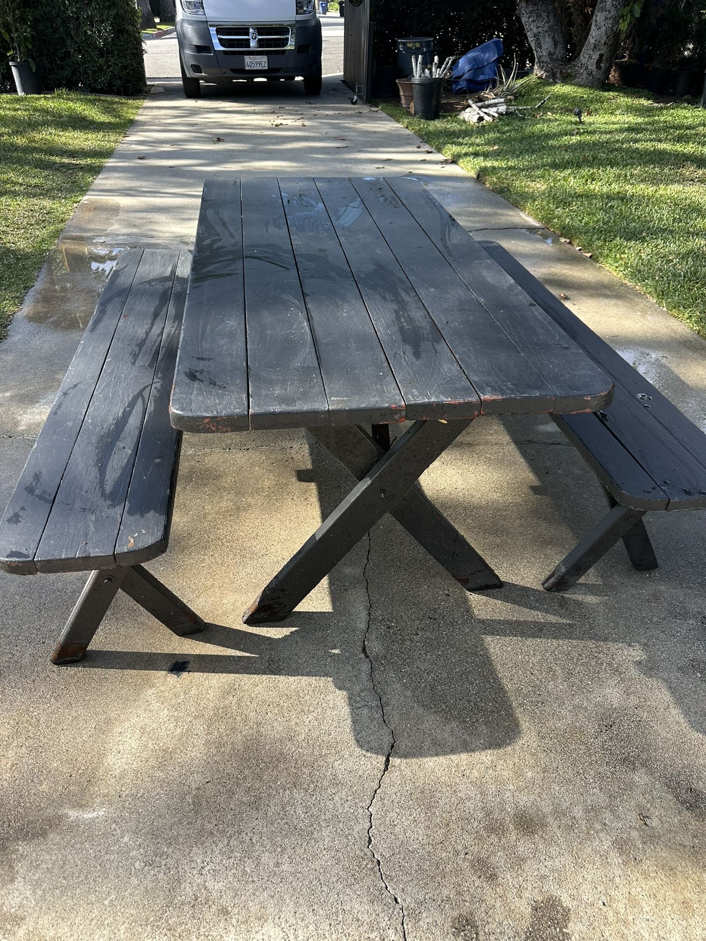 Wooden table and two benches