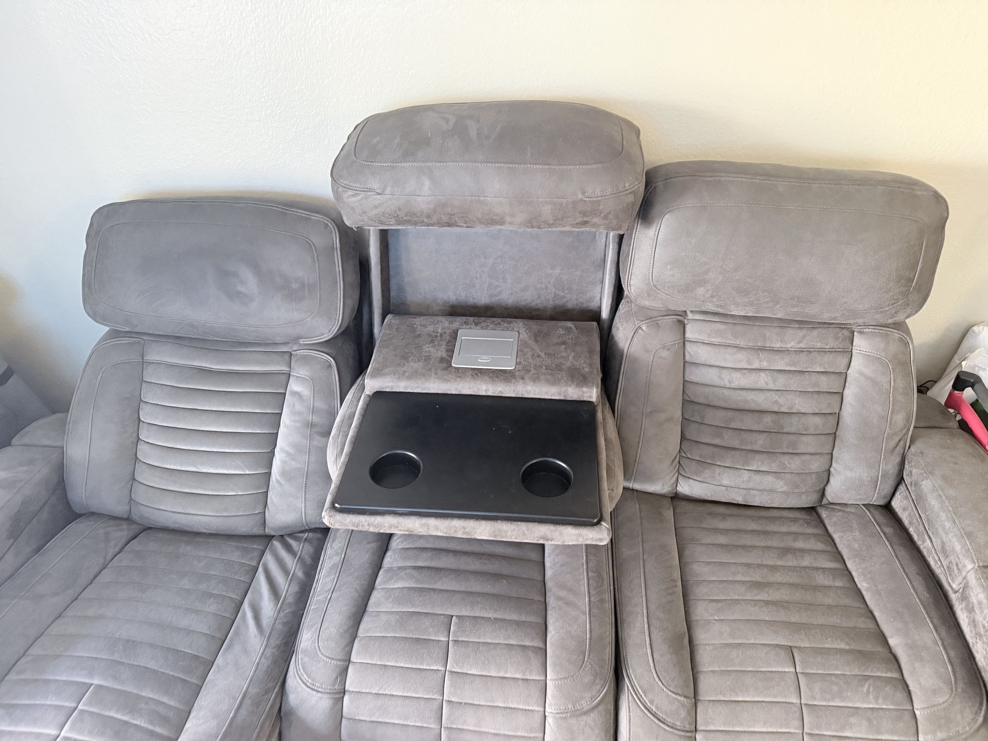 Free reclining sofa with center console and lighting. Sofa is over 10 years old and does show somewhere however everything still works. Must provide your own labor and transportation to pick up sofa.
