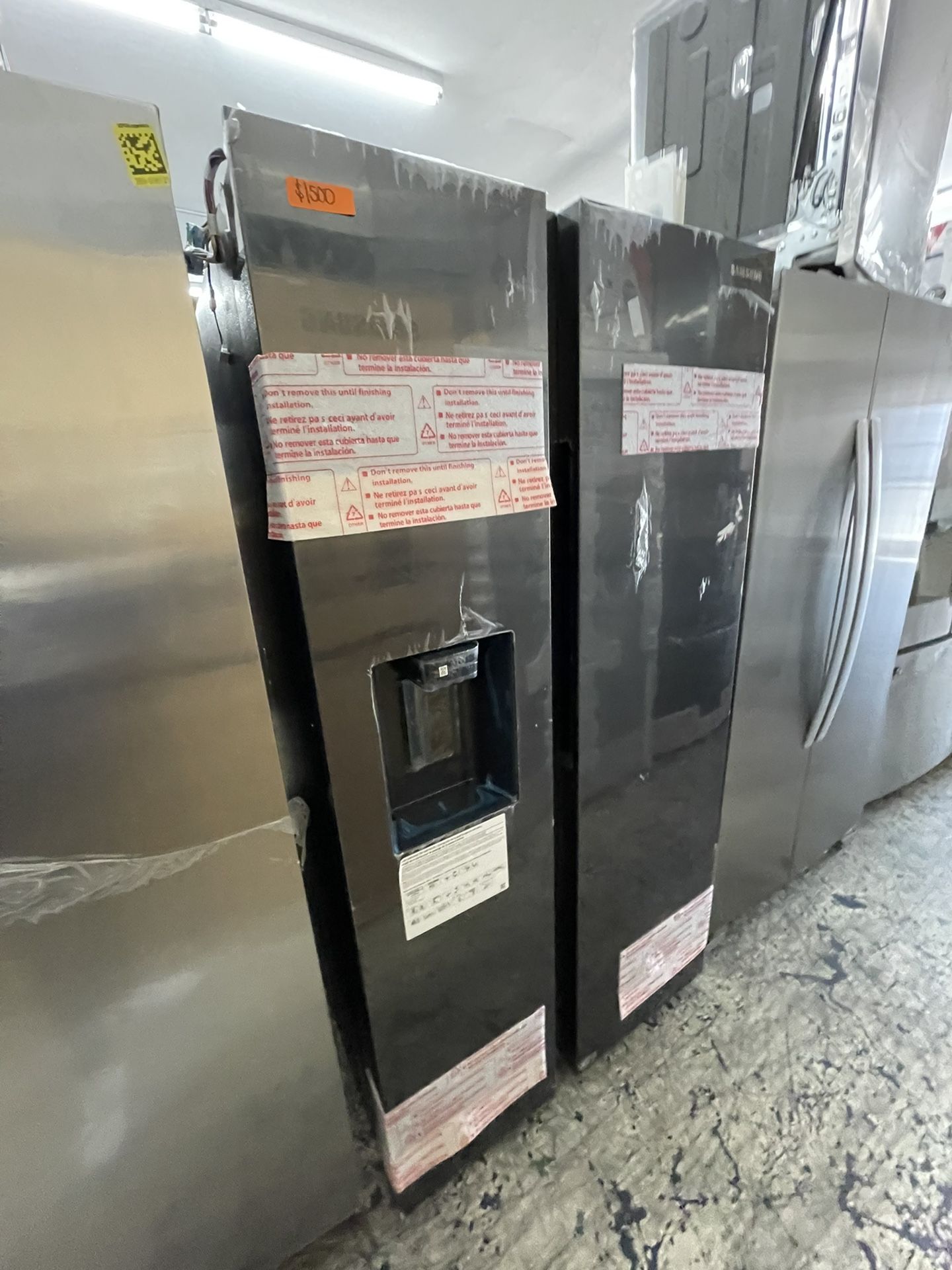 Samsung Side by side In black stainless New Open box We deliver to all cities IE/OC/LA/SD !! Same day delivery if needed!🚛 Pay Until it’s delivered 💸 We offer free haul away! All appliances come with warranty and some with manufacture warranty 😁 Financing options also available with ACIMA FINANCE pay within 100 days same as cash no interest or pay in 12 months with interest!! Easy application and approved within minutes🥳 Contact me for more info ‼️