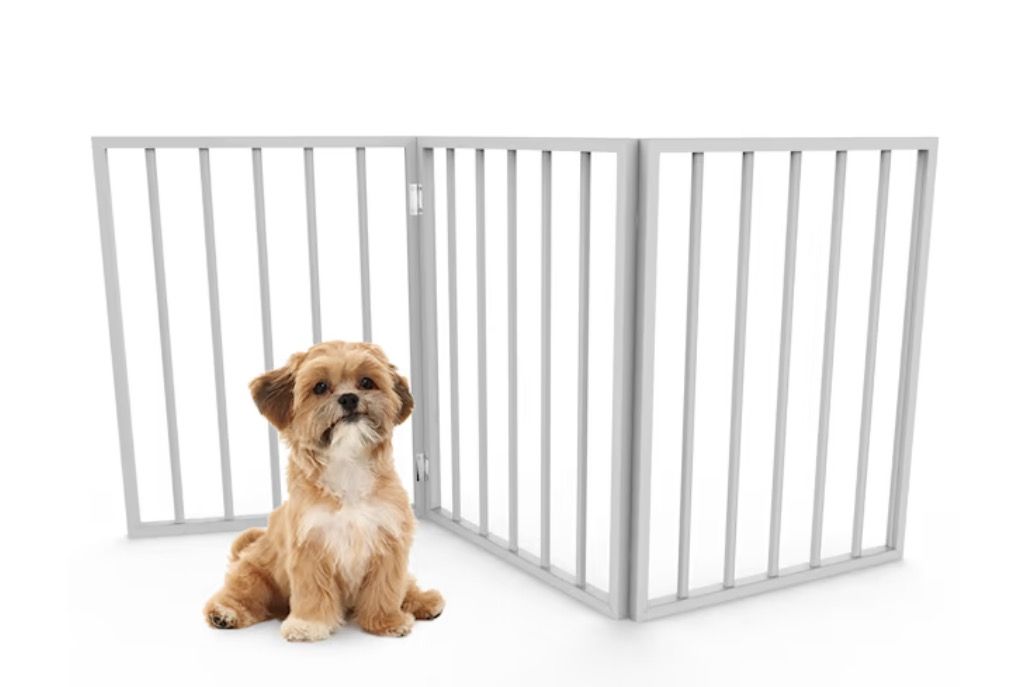 2 white freestanding pet gates