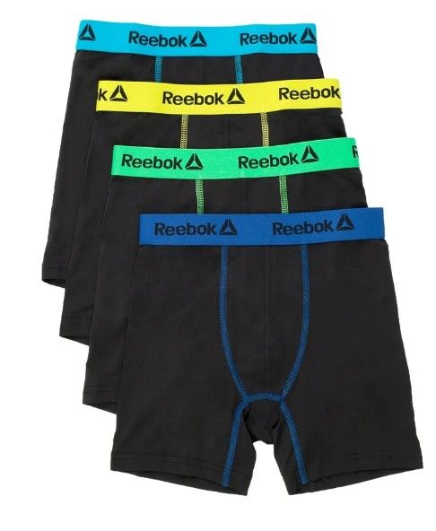 The package was opened to find the size but the wrong size. Brand new. Boys small 4 pairs Reebok boxer briefs. $5