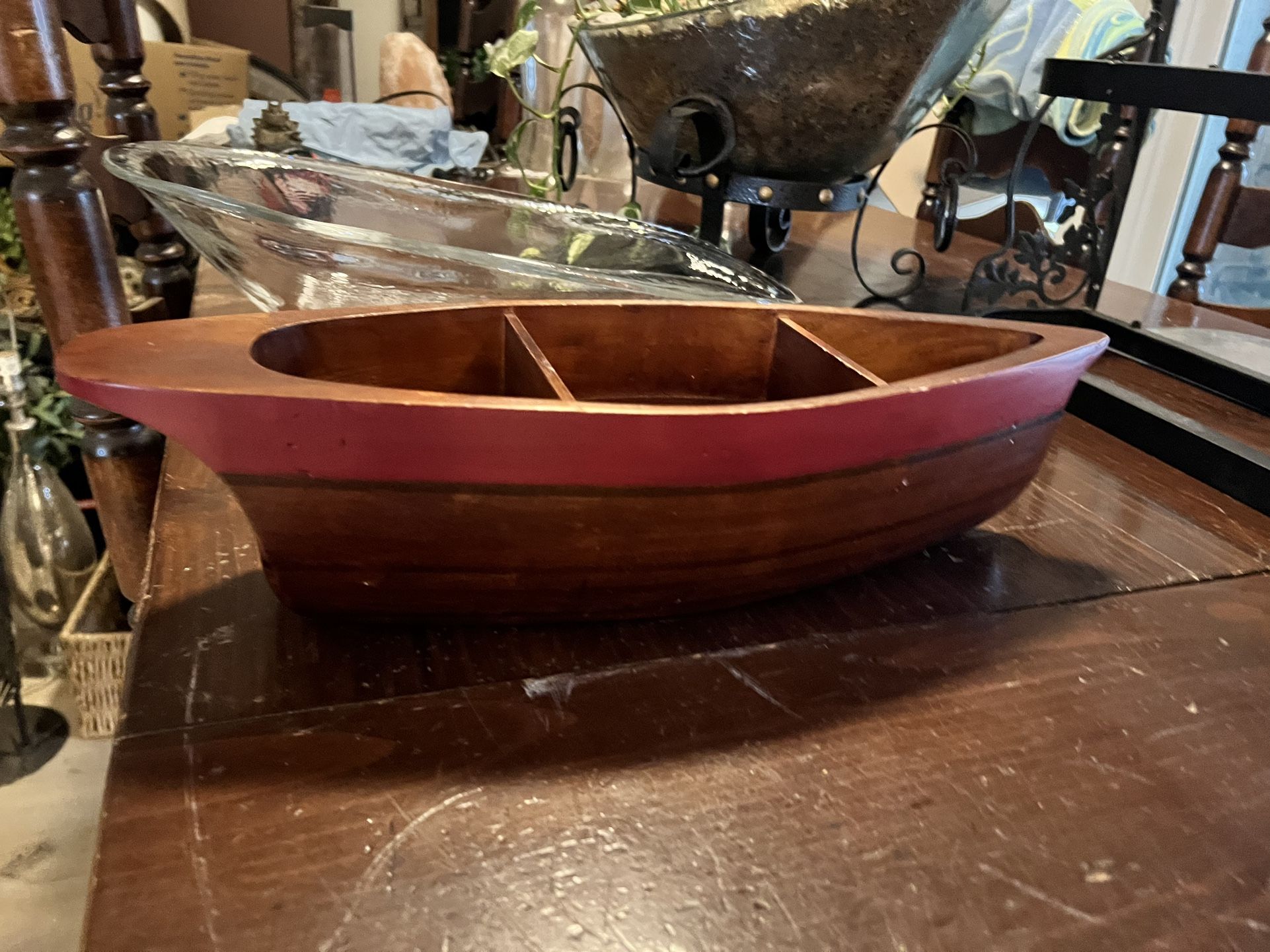 Perfect for your nautical or pirate rooms. In great condition. Has 3 dividers to store your treasures. Measures 18” long and 6” wide.