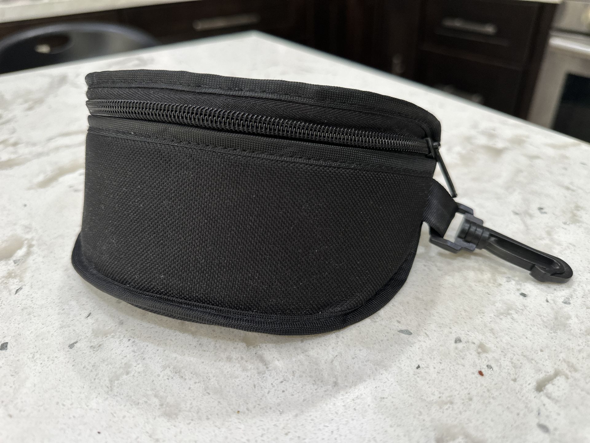 Brand new never used Op drops anti fog solution Microfiber pouch/cleaning cloth Elastic retention strap Clear and Grey lense with the black nose piece and black frames