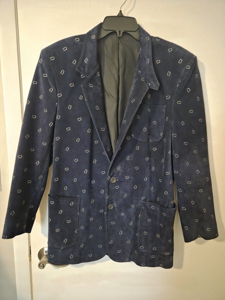 Size M Navy Blue Excellent Condition Geometric Micro Print Suede