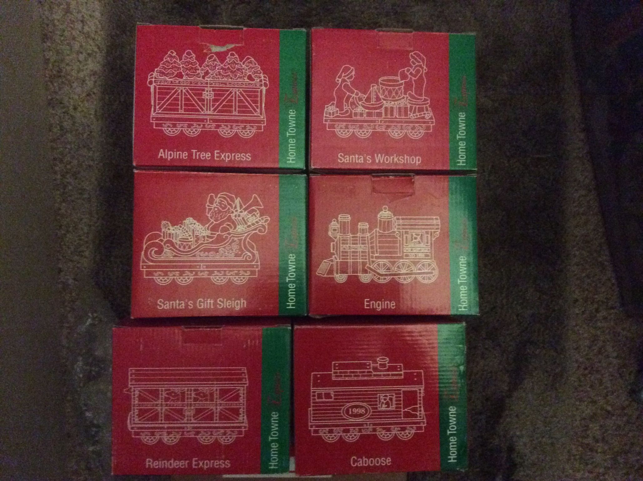 Never used JCP Home Town Express Train 6 cars Caboose, Engine, Workshop, Alpine Express, Santa Gift Sleigh, Reindeer Express .