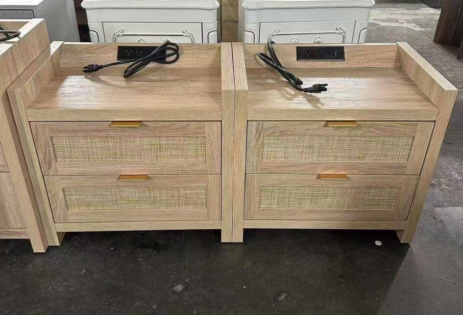 New assembled Rattan Nightstands Set of 2 Bedside Table - Bedroom Night Stand with Type-C Charging Station, 2 Drawers Storage - Boho Night Stands End