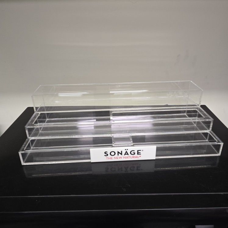 Acrylic 3-Tier Skincare & Makeup Organizer Stand Price: $5 Description Organize your vanity or bathroom counter with this high-quality, clear plexiglass display stand. This 3-tier "stadium style" organizer is perfect for displaying skincare products, perfumes, makeup, or even nail polishes so you can see everything at a glance. Features: Condition: New never used Design: 3-tier tiered shelving for maximum visibility. Sturdy Build: Thick, durable acrylic that is easy to wipe clean. Approximate Dimensions: Length: ~14.5 inches Depth: ~8 inches Height: ~4 inches (back tier) Price: $5 Pickup only ,Inglewood 90304. Cash only