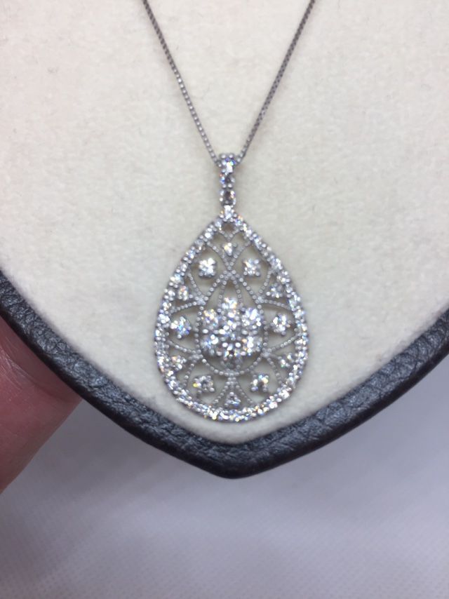 Platinum 1 Ct Diamond Necklace /pendant With Adjustable Chain