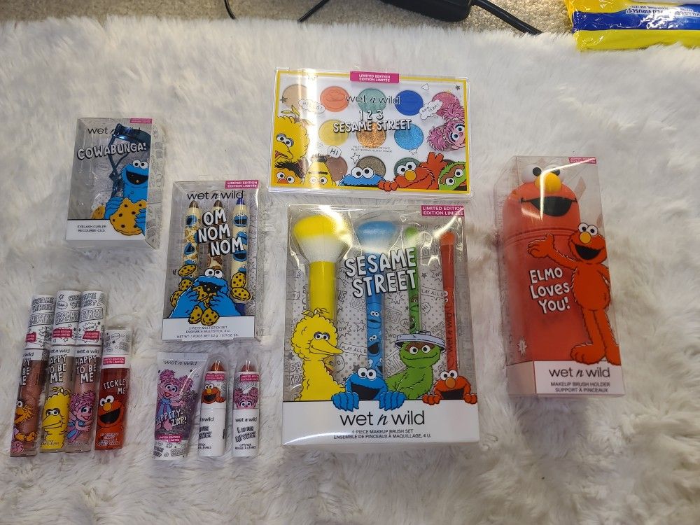 12 pcs bundle Limited Edition Seasame Street Wet n Wild Makeup $90. I'm open to trading other LE Sesame Street Wet n Wild Makeup. Iso the elmo headband.