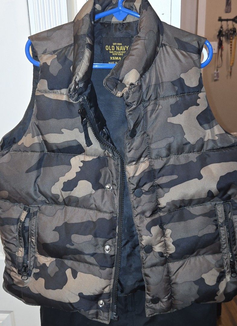 Warm, clean, and ready for winter fun. Includes Old Navy camo puffer vest Great condition. No stains or rips.