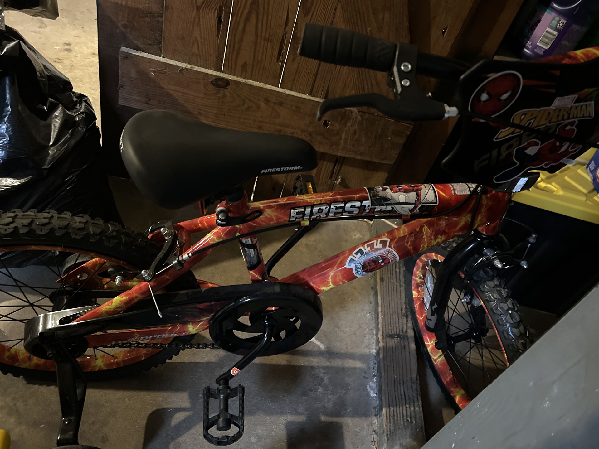 Young child bike with training wheels. Hardly ever used it. Tires do have low air.