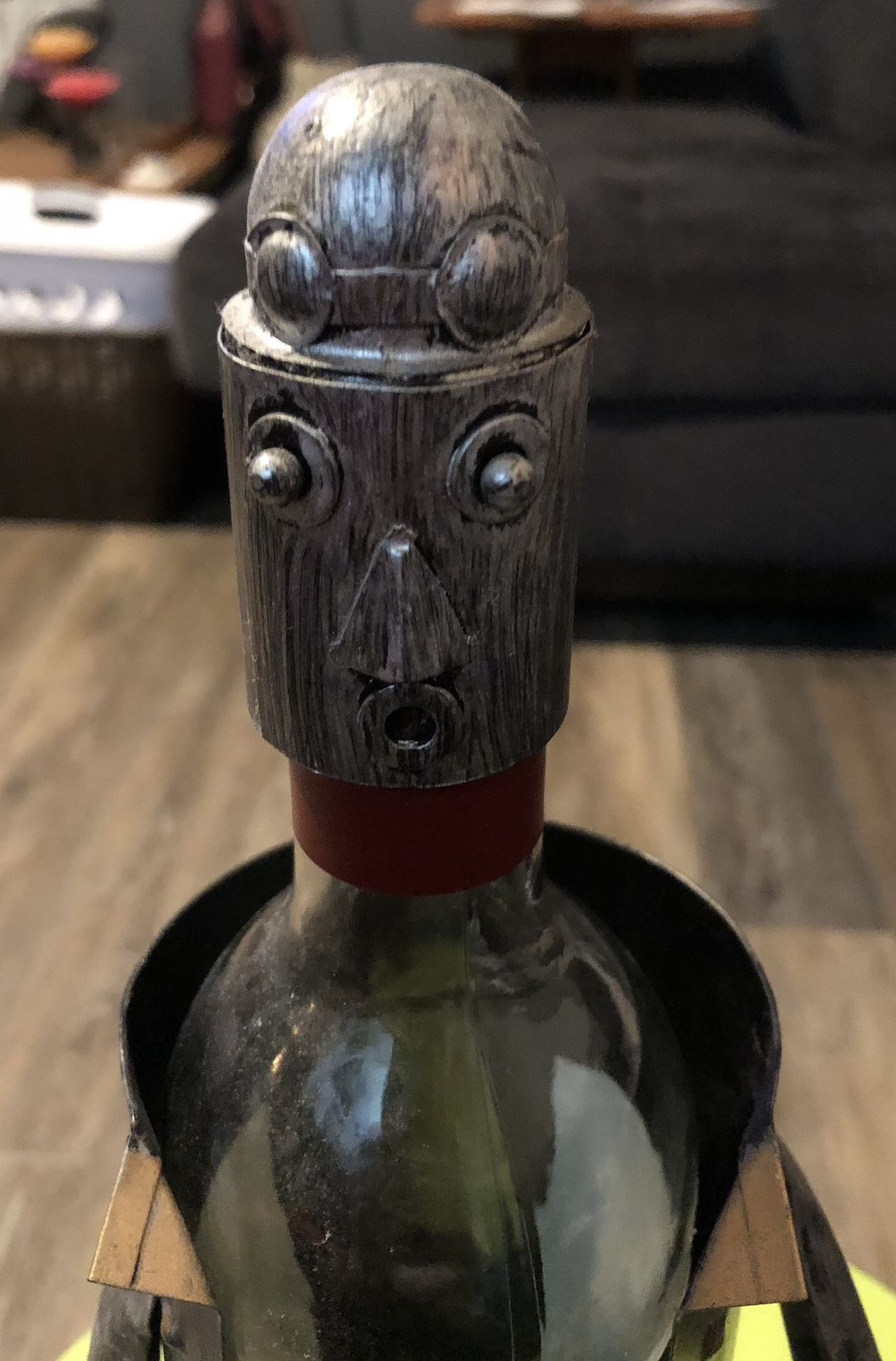 Great Condition! -Galvanized Metal -Wine bottle not included (only used for pictures) Measurements Height 13” w/a standard 750 mil wine bottle w/ helmet on Diameter 5” at its widest point FCFS No Holds Cash, Same Day in Person Pickup Pickup in Vernon Roughly Southeast of Waukesha