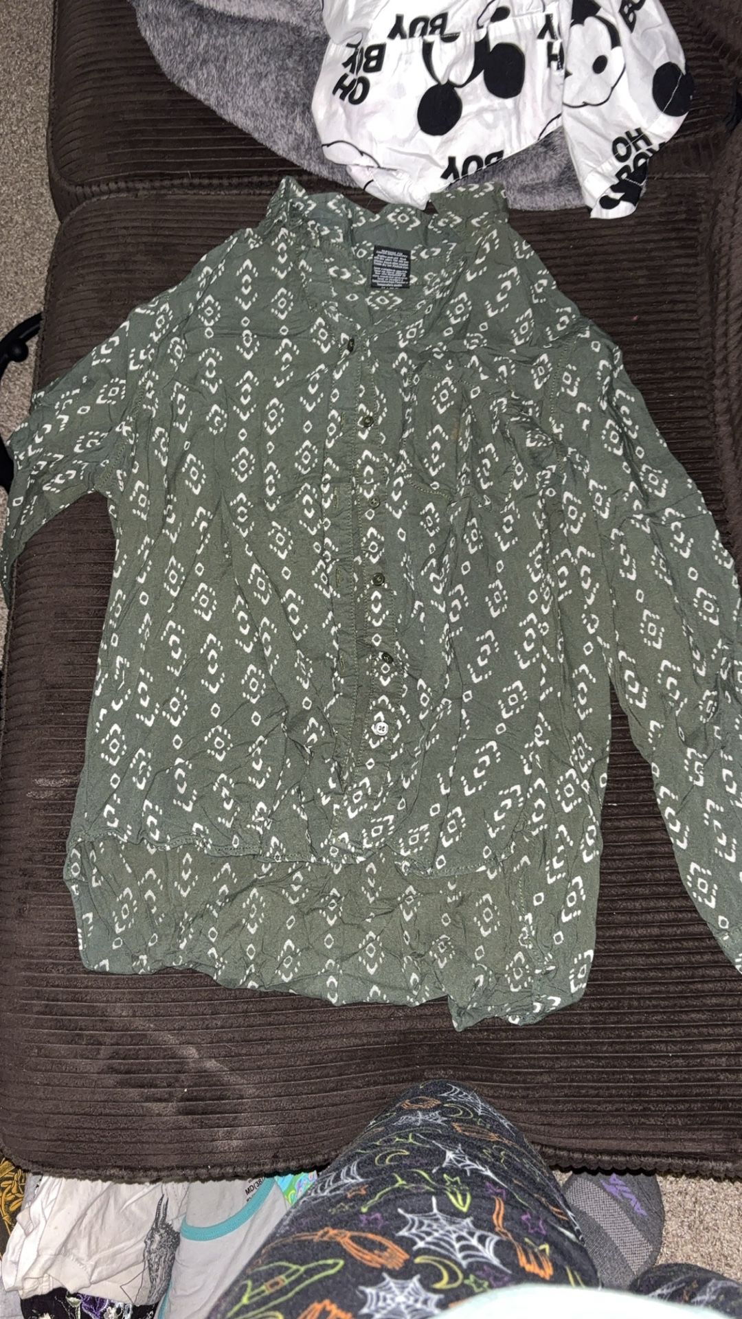 Nicer tops 5-12 dollars please check my other listings for tons of clothes willing to check trades and do bundles here is a list of all the sizing if you want to just ask me feel free to Good threads orange and black flannel size Yellow Amazon flannel size XL Yitty hot pink sheer body suit size L Willow white orange shirt size XL Bobeau green vest size L Alfani black squiggle button up Size XL Etceter floral white size 10 Green and white button up size 12-14 Wild rose open back size M Pepper button up size M