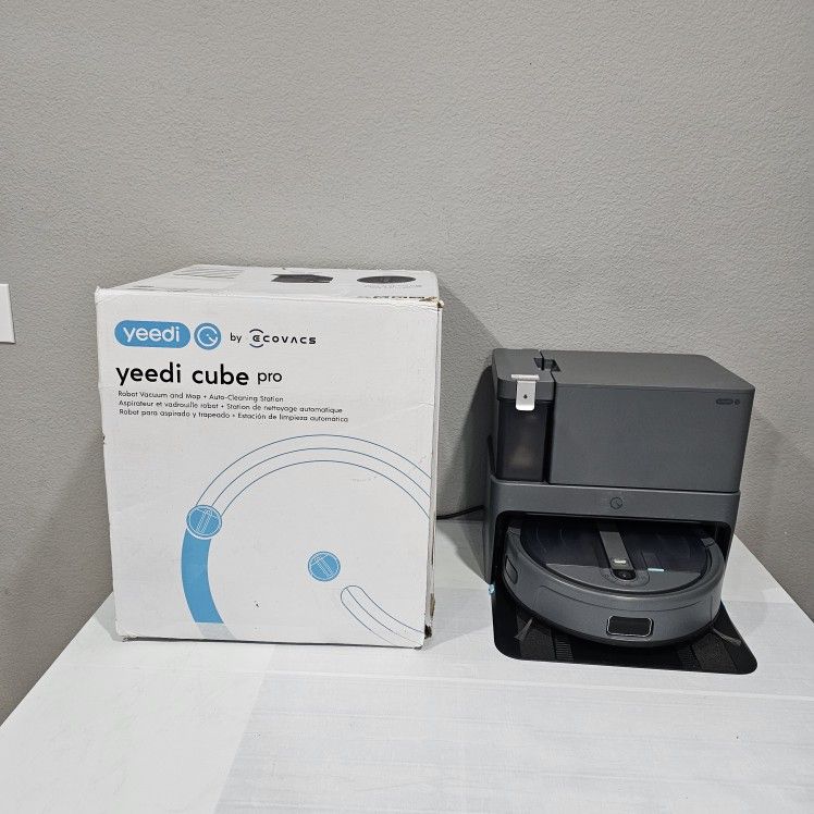 yeedi cube pro robot vacuum and mop system with full auto-cleaning base selling for $250 firm. tested and working as it should. strong 5100pa suction for hard floors and carpets, sonic scrubbing mop with 2500 vibrations per minute for deeper floor cleaning, and automatic mop lifting to protect rugs. base station handles dust auto-emptying plus mop washing and drying for low maintenance use. unit has been gone through, wiped down, and checked for proper operation. includes robot, auto-cleaning station, water tank, and dock as shown. great option for hands-free daily cleaning without paying flagship prices. ready to set up and use.