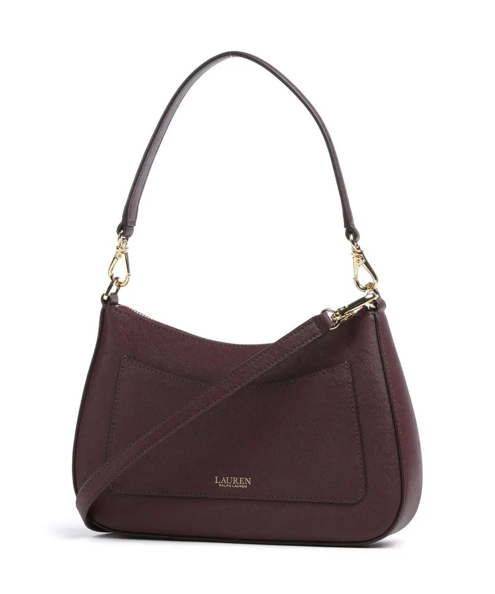Elevate your style with this sleek and elegant Ralph Lauren shoulder bag. Crafted in luxurious burgundy saffiano leather, this bag features a minimalist silhouette with refined gold-tone hardware and the iconic RLL logo at the front. The structured shape is perfect for day-to-night use, offering just enough space for your essentials. • Dimensions: 10” W x 6” H x 2” D • Material: Textured saffiano leather • Color: Deep Burgundy • Gold-tone hardware with RLL logo • Detachable and adjustable shoulder strap • Zipper closure for secure storage • Interior slip pocket • Can be worn as a shoulder or crossbody bag A timeless addition to any wardrobe — chic, compact, and effortlessly versatile.