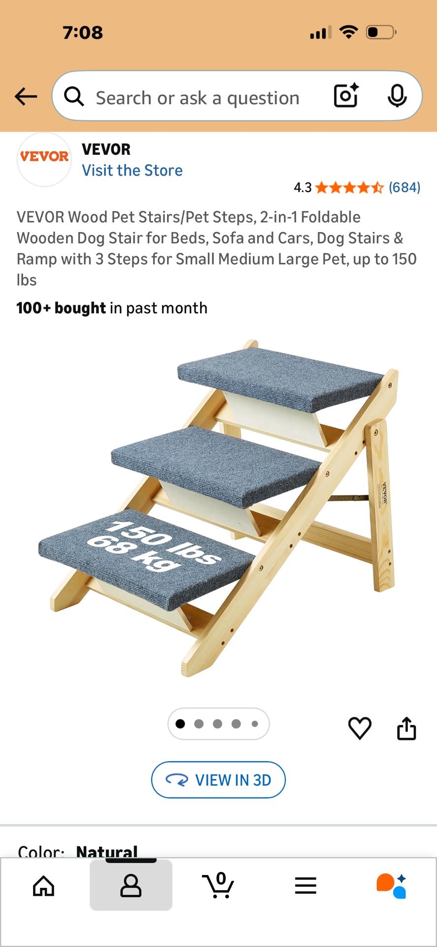 VEVOR Wood Pet Stairs/Pet Steps, 2-in-1 Foldable Wooden Dog Stair for Beds, Sofa and Cars, Dog Stairs & Ramp with 3 Steps for Small Medium Large Pet, up to 150 lbs