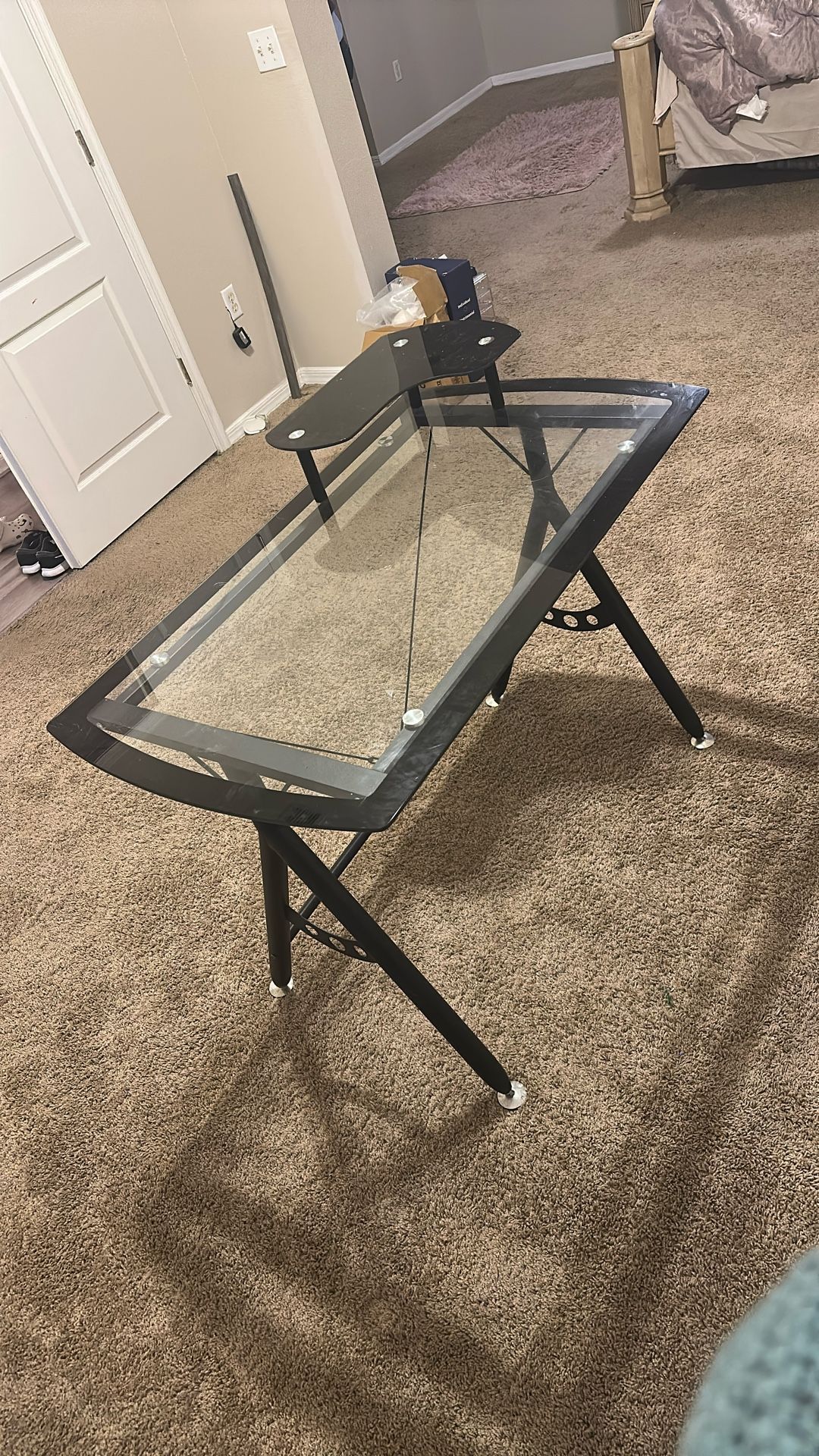 A small convenient desk that is helpful for one person to do paperwork, homework or desk work.