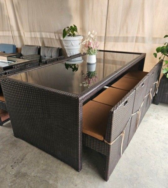 Wicker Patio Set 9pc/Outdoor Dining Set/Outdoor Furniture/Cash Only