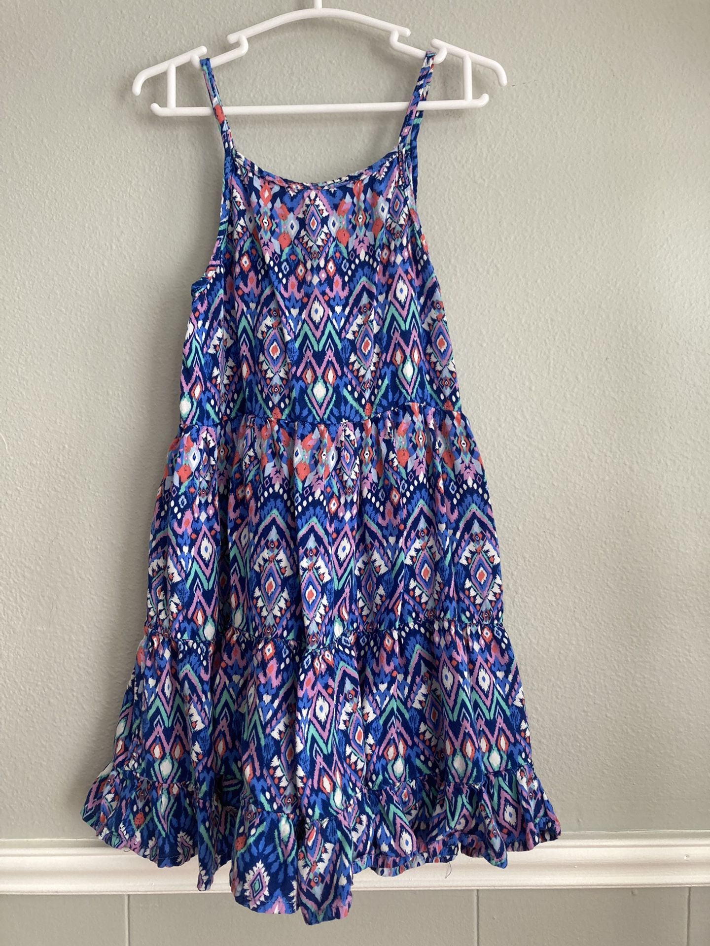 Kid pik super cute spaghetti strap dress. Ruffled, flowy dress. Multicolored with abstract design. 100% rayon Soft light weight material. Size XS 5/6. Perfect condition. Local pickup in north Portland, Oregon. Check my other listing to create a bundle. Thanks for looking