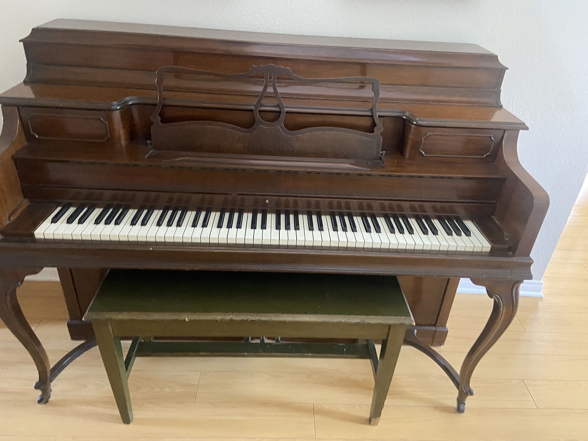 Pretty piano we have had 30 years. 2 keys need repair but still a great piano with a few good years left!