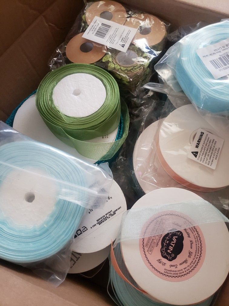 Brand New in packages, 16 Ribbons, variety of colors, sizes. Whole Box 25.00 pick up only (Victorville) All my items come from a Smoke and Pet FREE home.