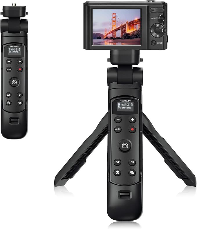 AODELAN Rechargeable Wireless Camera Remote Control Handle Mini Tripod for A7C,A7III,ZV-1,ZV-E10,ZV-1F,A6100,A6400,A6700,A7IV,RX100 VII,A9,A9 II,DSC-RX0 II. About this item Compatible with Multiple Models: AODELAN shooting grip with shutter release compatible with Sony ZV-1, ZV-1 II, ZV-1F, ZV-E10, A7C, A6100, A6400, A6600, A6700, RX100 VII, RX0 II, A7 III(with Ver. 3.0 firmware update), A7R III(with Ver. 3.0 firmware update), A7R IV, A9(with Summer 2019 firmware update), A9 II, A7S III, for Cyber-shot DSC-RX0 II (with Ver. 2.0 firmware update), DSC-RX100 VII.Replace GP-VPT2BT. Pls notices that Maximum Load is 1kg / 35.3 oz, don't up to overweight. Flexible tilt function:The camera mount can be flipped forward up to 90° and backward up to 45°, can be locked every 15°. And can be turned left/right 360°, can be locked every 90°.A flexible angle tilt function makes it easy to set the ideal camera angle (whether shooting selfies or a subject). Wireless remote control: this camera tripod is equipped with a wireless remote control. This remote control supports taking still photos, short videos, bulb shooting, continuous shooting, self shooting, zoom and focus. It has a 360 ° omni-directional remote control, and the remote control distance can reach 10m/32.8 feet. Please adjust the camera to the appropriate mode.And this remote shutter can by pressing the C1 or AF-ON button to activate the function assigned to the camera's C1 or AF-ON button. OLED Screen&Upgrade Type-C interface: The newly added OLED display screen visualizes your operations, making the current status clear at a glance and providing clearer and more specific display function settings. The included Type-C cable can directly charge the remote control, with a full battery life of about 10 hours, and the power can be saved by pressing the shutdown button. It can also be used for firmware upgrades to prevent future camera upgrades from causing incompatibility. As a Tripod: Spread the grip's cleverly integrated legs it can become a stable tripod for the camera leaving both hands free for vlogging and other applications. Eliminates the wires and makes turning the camera that’s mounted on the shooting grip easier.Simply aim and shoot to get in the way.