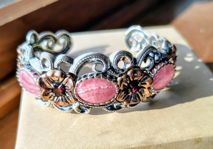 Gorgeous Carolyn Pollack Cuff Bracelet With Rhodochrosite Stones