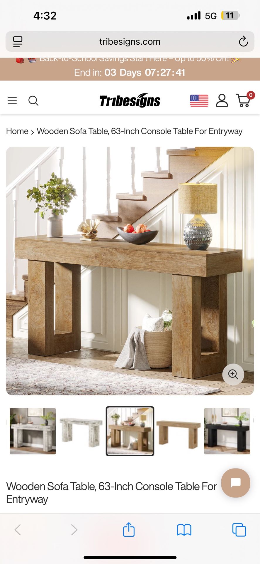 Tribesigns Wooden Sofa Table, 63-Inch Console Table For Entryway New in box Retails $185 asking for $115 obo Item#32