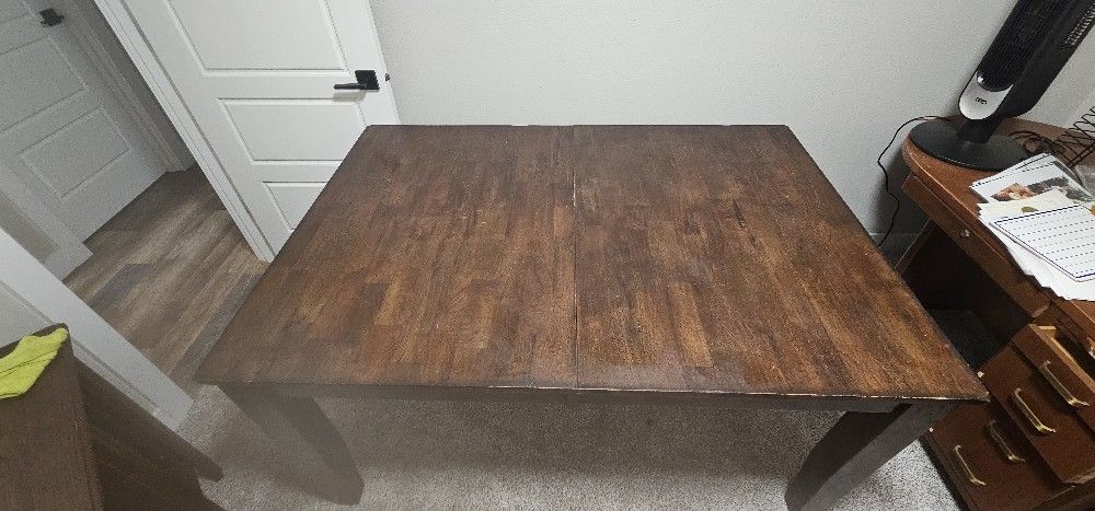 Used solid wood dining table Price is negotiable Built in 18 inch center leaf. 21 inches tall. 60 in long 42 in wide.