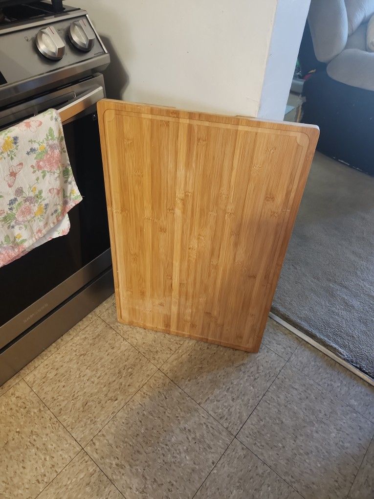 I got a beautiful, large wood cutting board. You could also use it over your Stove range to cover it. It's a 20 / 30. It is sturdy, it's almost few only used it once.I'm in the city of balflower, and i'm asking forty dollars