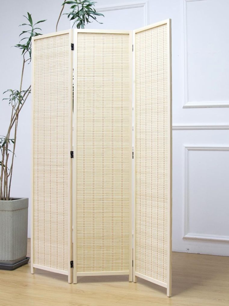 Beige 3 panel room divider 67" H X 46" W