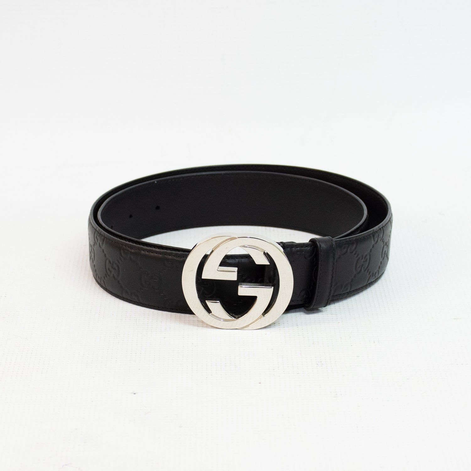 Gucci Black Signature Leather Interlocking Silver Buckle Belt 100/40