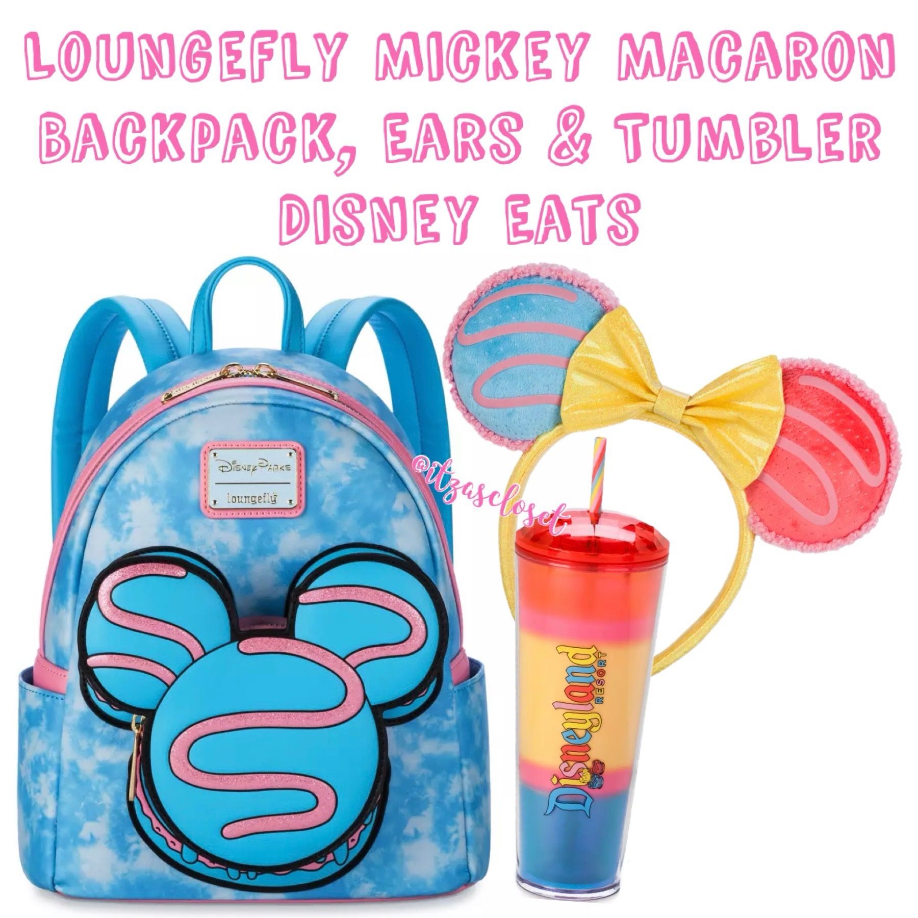 Loungefly Mickey Disney Eats Macaron Backpack, Ears, & Tumbler Bundle Set NWT