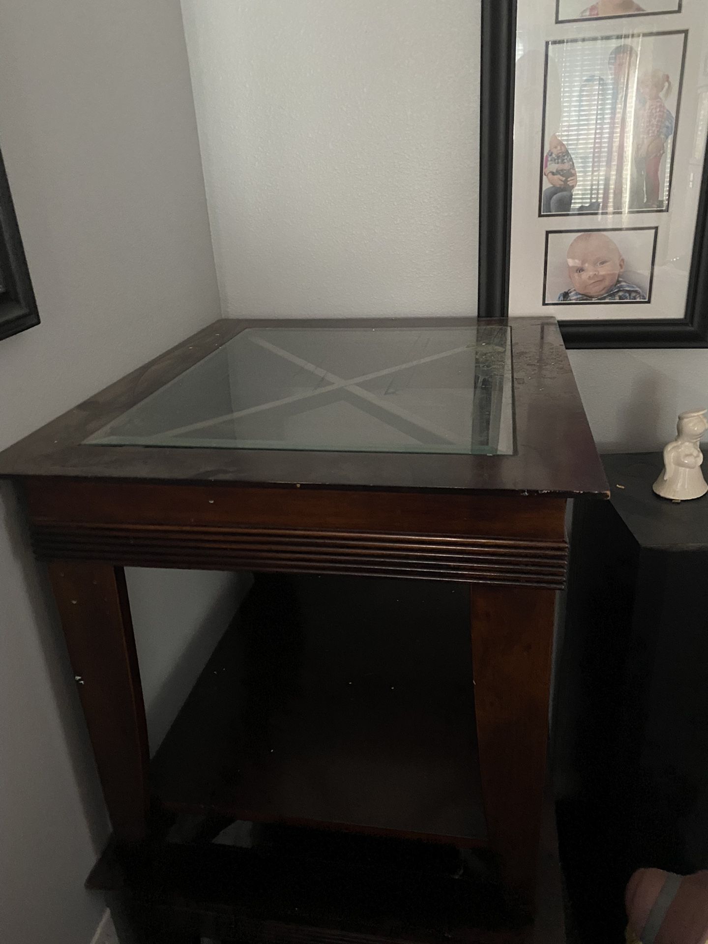2 Dark Wood Glass Topped End Tables