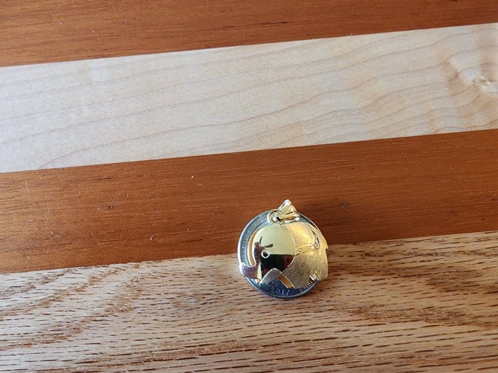 This pendant is crafted of 14k gold (stamped). Features a unique 3D design in the shape of an elephant! Measures about 1" long and weighs 3.3 grams.