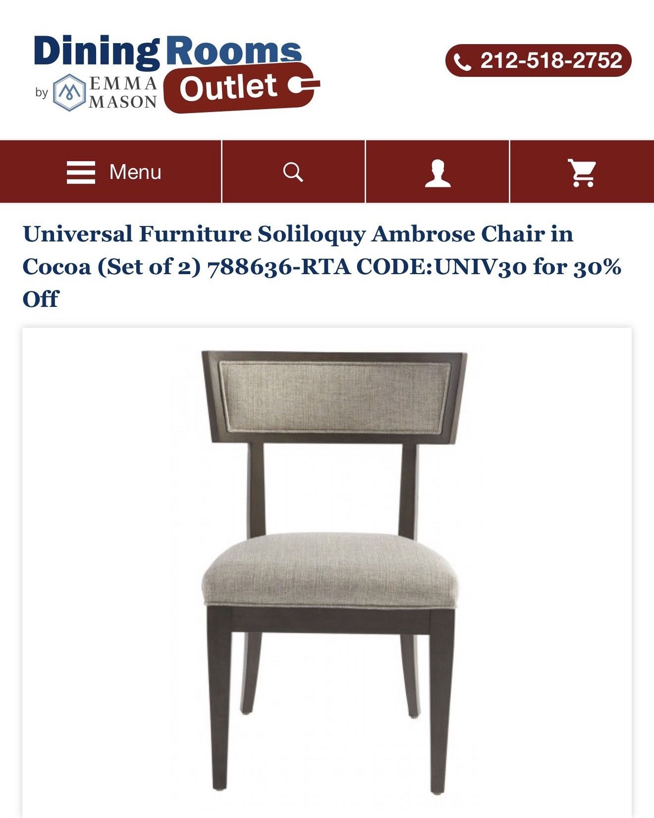 Universal Furniture Soliloquy Ambrose Chair in Cocoa (Set of 2) 788636-RTA New in sealed box. Assembly required.