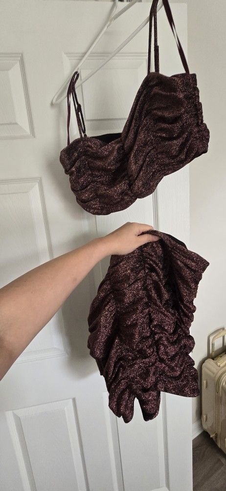 SPARKLY Top with Skirt, Gorgeous brown gold ruched mini...