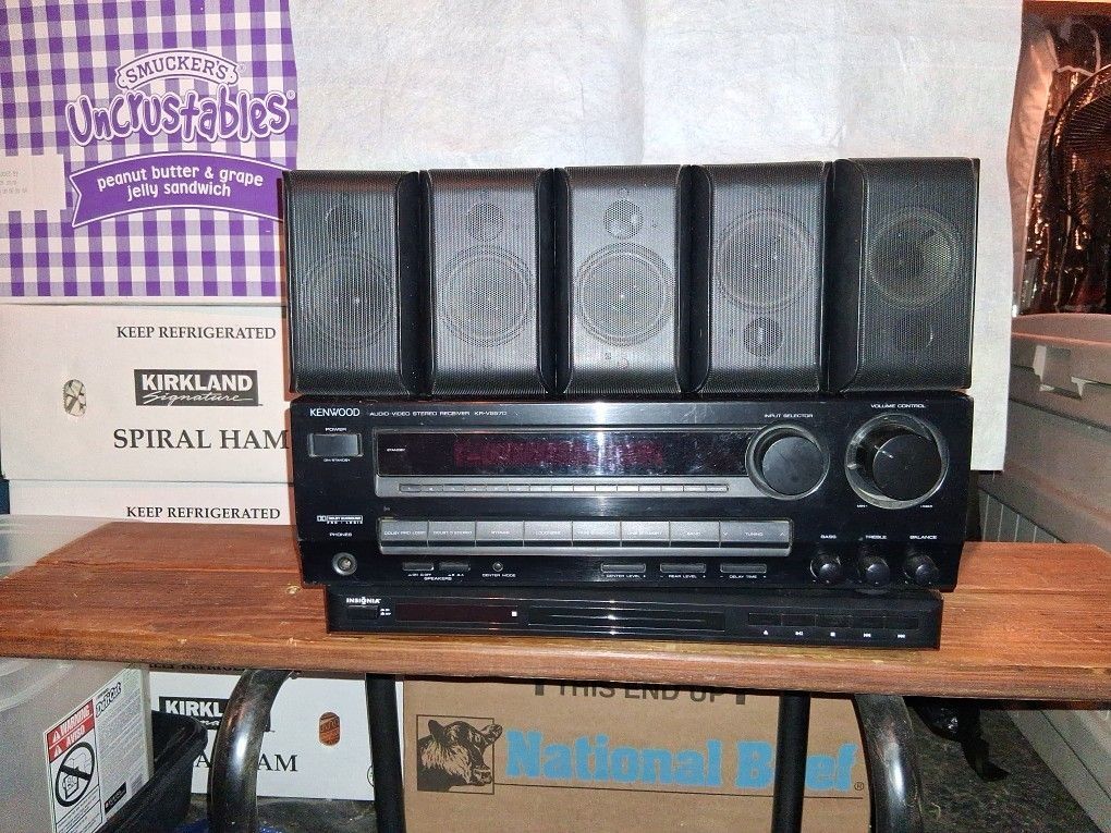 KENWOOD AUDIO STEREO RECEIVER KR-5570 w/5 INSIGNIA SPEAKERS and INSIGNIA DVD Player