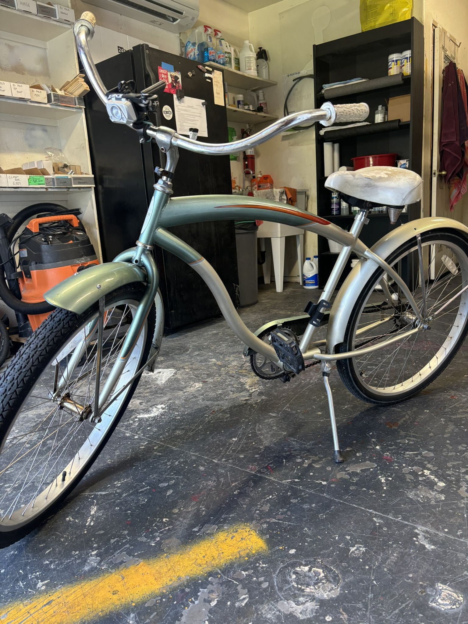 Rare Classic So Cali. Grand Master Micargi Bike Single-Speed Foose In good condition. Colors: White Metallic Green Silver 🍊 Minor Scuff Or Scratch on Seat Material: Steel Wheel Size: 26 in. I'm asking for $100 firm pick up. $150 for delivery. Text / call 4️⃣8️⃣0️⃣ • 3️⃣1️⃣6️⃣ •4️⃣0️⃣4️⃣2️⃣