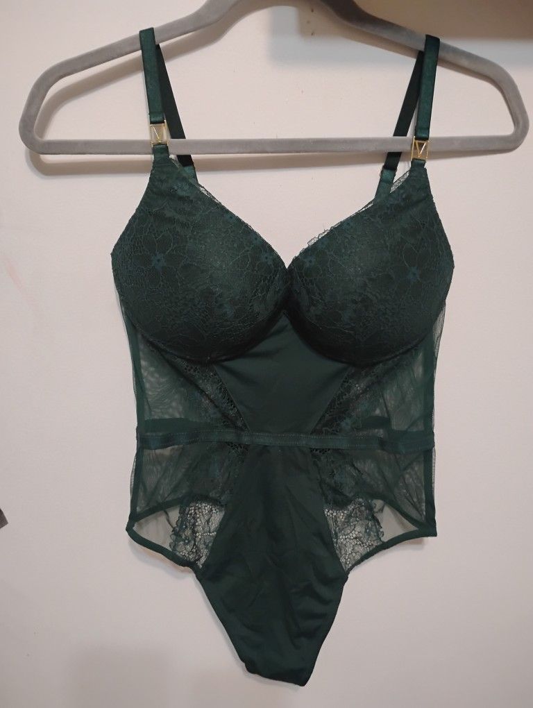 Victoria Secret Emerald Green Lace Underwire Bodysuit Lingerie – Mesh & Floral Lace