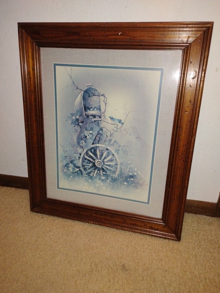 Vintage Home Interiors Print Framed Picture! Wood Frame!