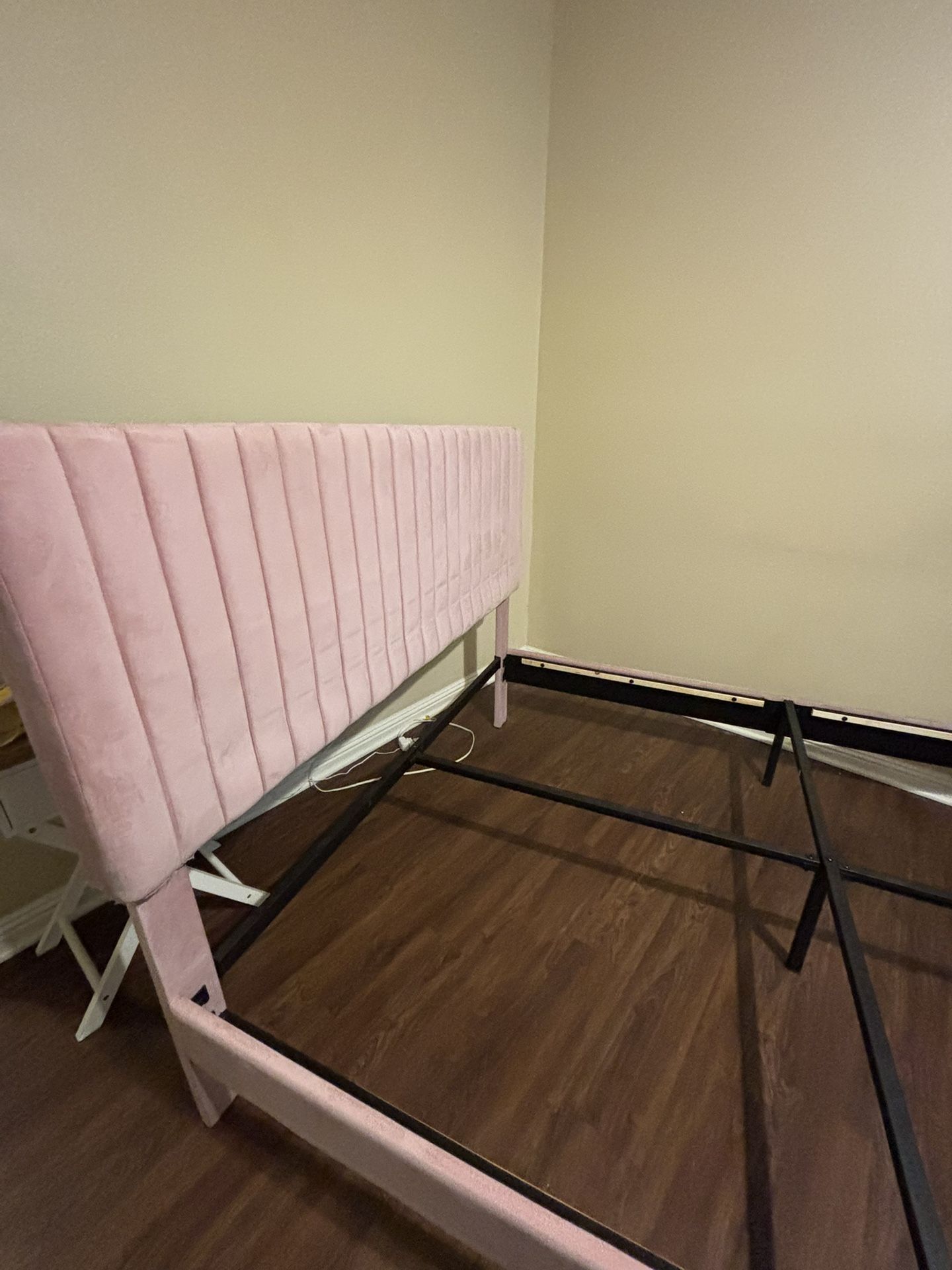 Used but very well used Clean no scratches or or rips If you want one of the other alone please text me & let me know! I will do 50$ for bed frame & headboard & 30$ for box spring only!